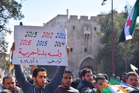 Според едни сводки, днес е имало около 100 протеста в различни места в Сирия. Колкото и да злорадстват правоверните тролове, със спирането на бомбите хората (малкото неизбягали) пак излизат по улиците и пак скандират все същите лозунги - "долу Асад" и "обединение на бунтовниците". Е, сега споменават от време на време и Путин и Иран.